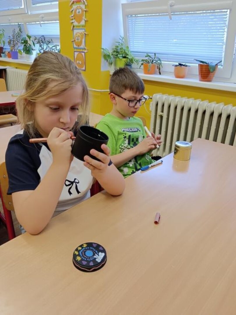 Dne 8.4. 2026 se žáci ve škole zúčastnili kreativní akce zaměřené na malování magnetů, taštiček a krabiček. Program vedli manželé Chumovi, kteří dětem představili různé výtvarné techniky a podporovali jejich fantazii. Akce se zúčastnily třídy 2.B, 3.C, 4.B a 4.C a děti si odnesly nejen vlastnoručně vyrobené výrobky, ale i pěkný zážitek.
