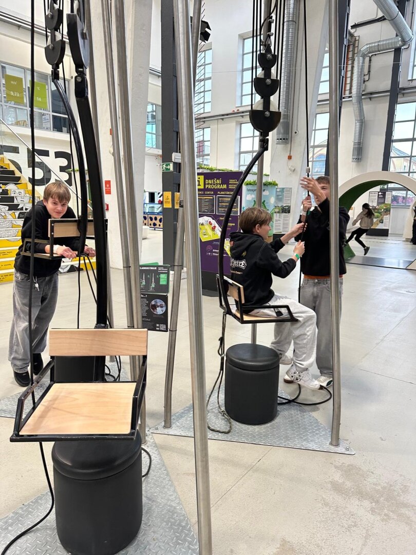 Součástí programu byla nejprve prohlídka interaktivních expozic, kde si žáci mohli vyzkoušet řadu experimentů a hravou formou si rozšířit své znalosti z oblasti přírodních věd a techniky.