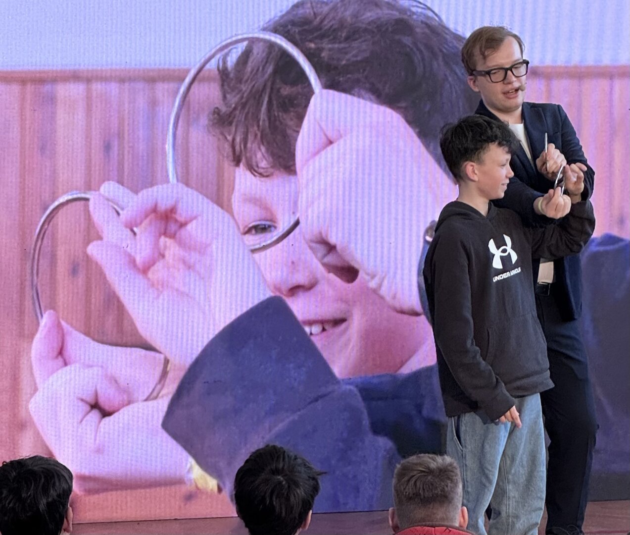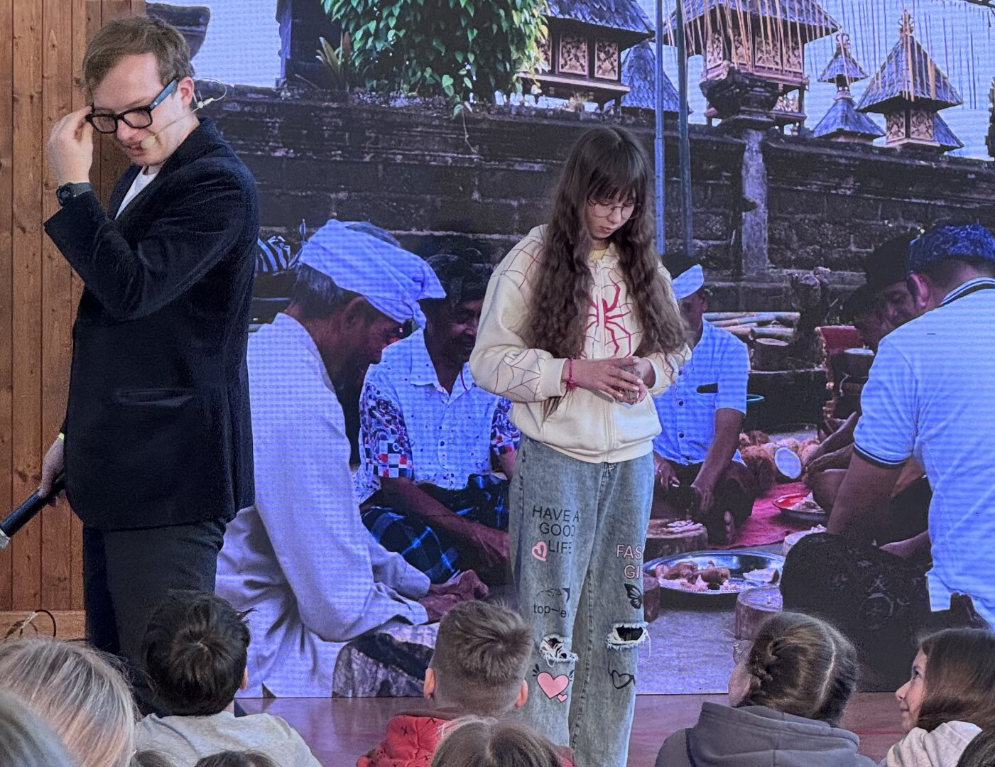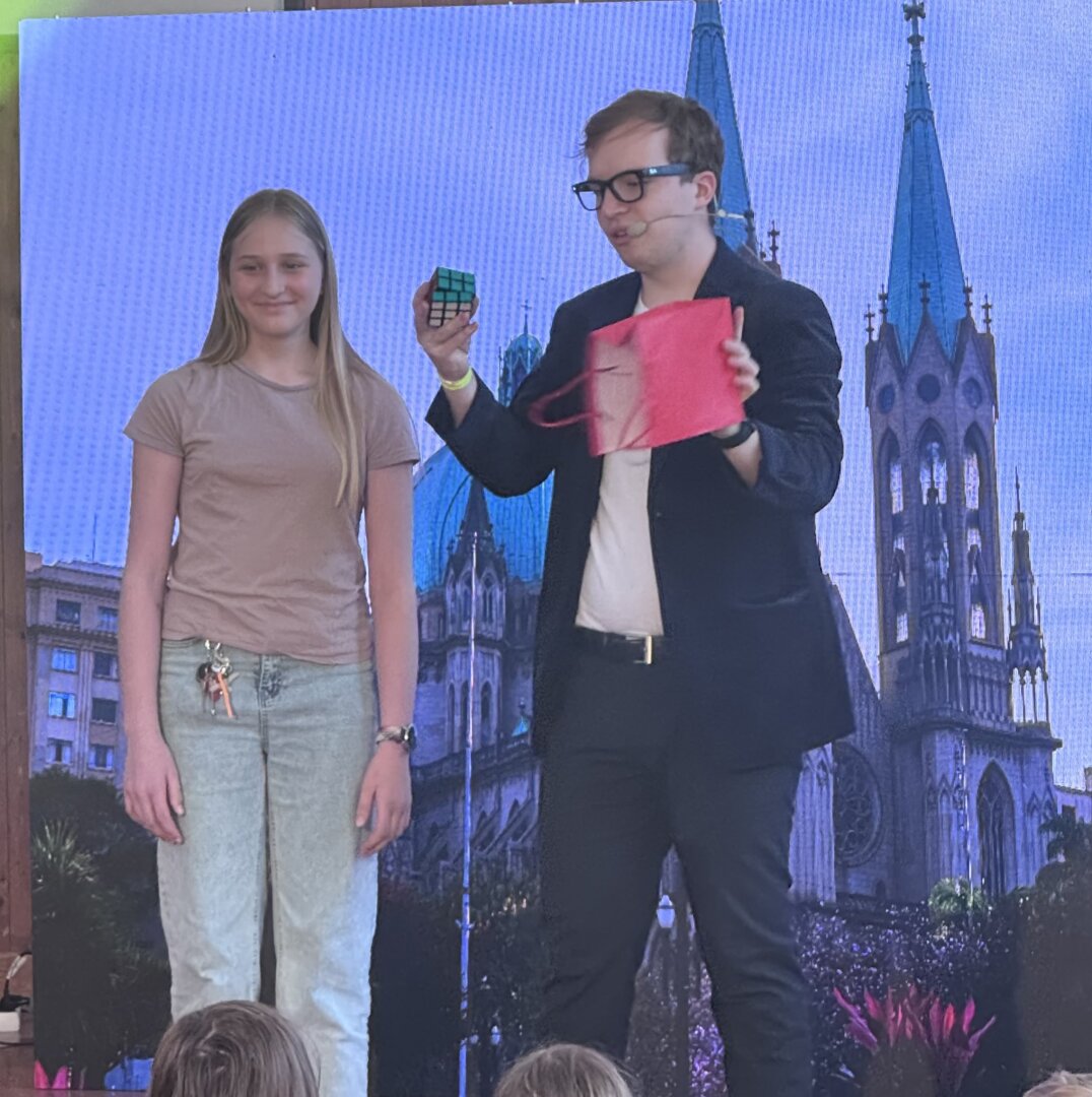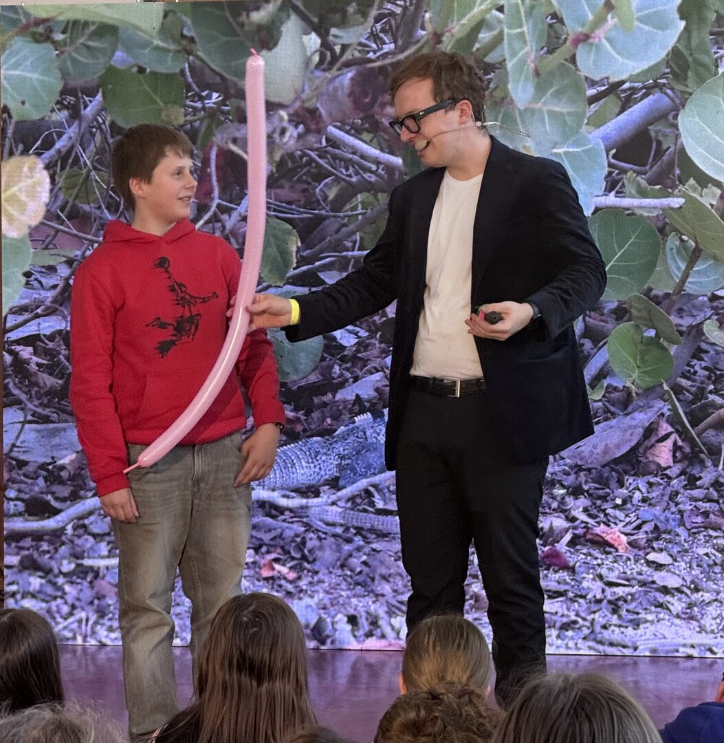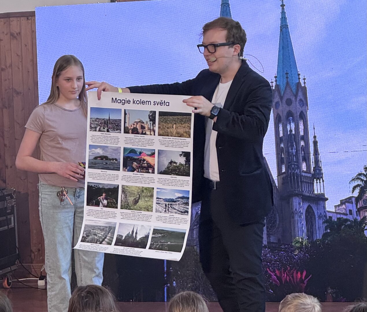 Dnes se naše škola proměnila v místo plné kouzel a zábavy. Navštívil nás kouzelník Tomáš Podzimek se svým programem „Magie kolem světa“. Během vystoupení nás zavedl do různých koutů planety a předvedl triky inspirované různými kulturami. Viděli jsme hlavně kouzla s kartami, šikovné manipulace s předměty a také čísla, do kterých se zapojili někteří žáci z publika. Atmosféra byla po celou dobu velmi veselá a plná smíchu. Celé vystoupení bylo zábavné a zároveň nám ukázalo, kolik tréninku a soustředění je za každým kouzlem. Návštěva kouzelníka Tomáše Podzimka byla příjemným zpestřením našeho školního dne.