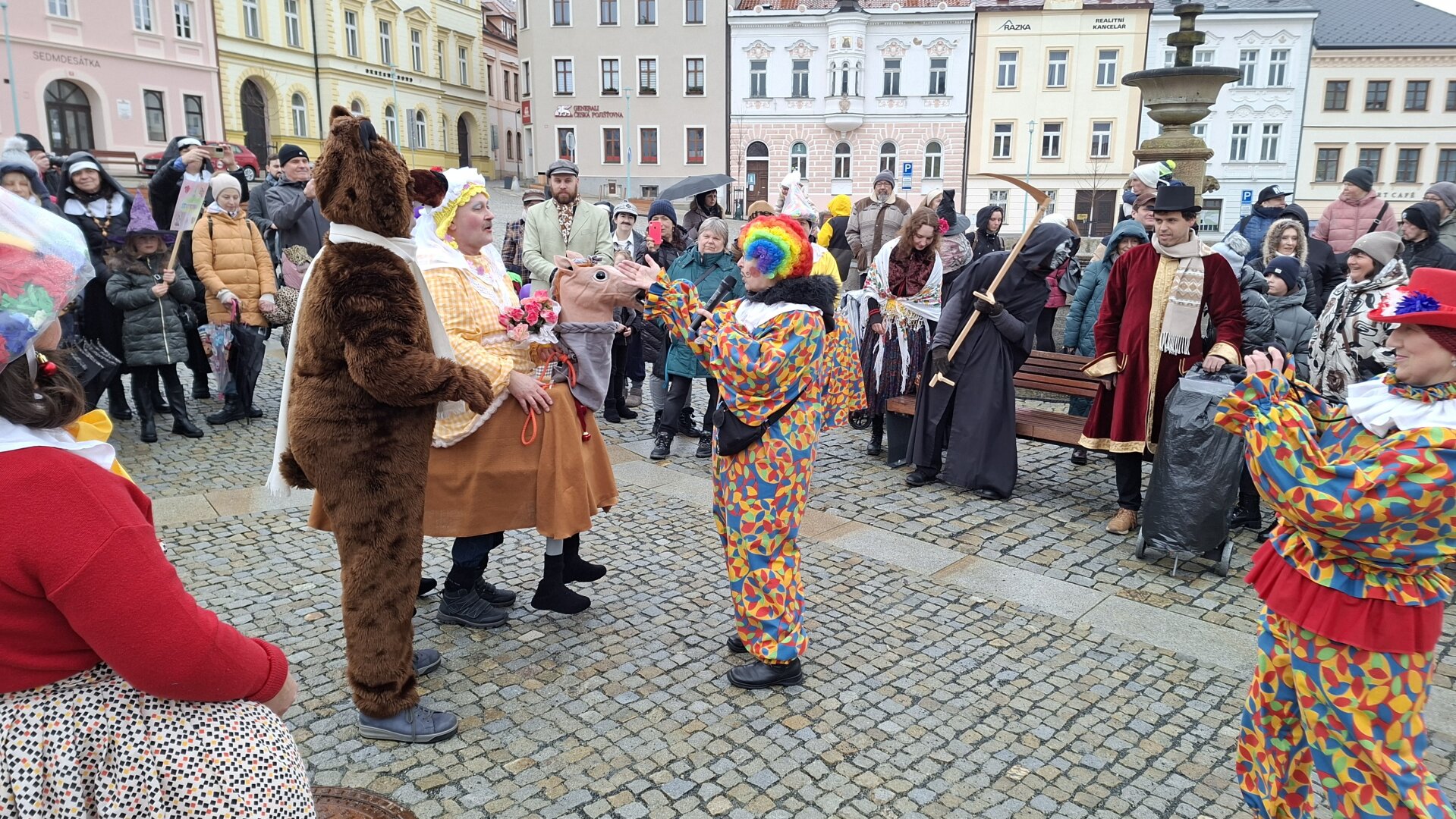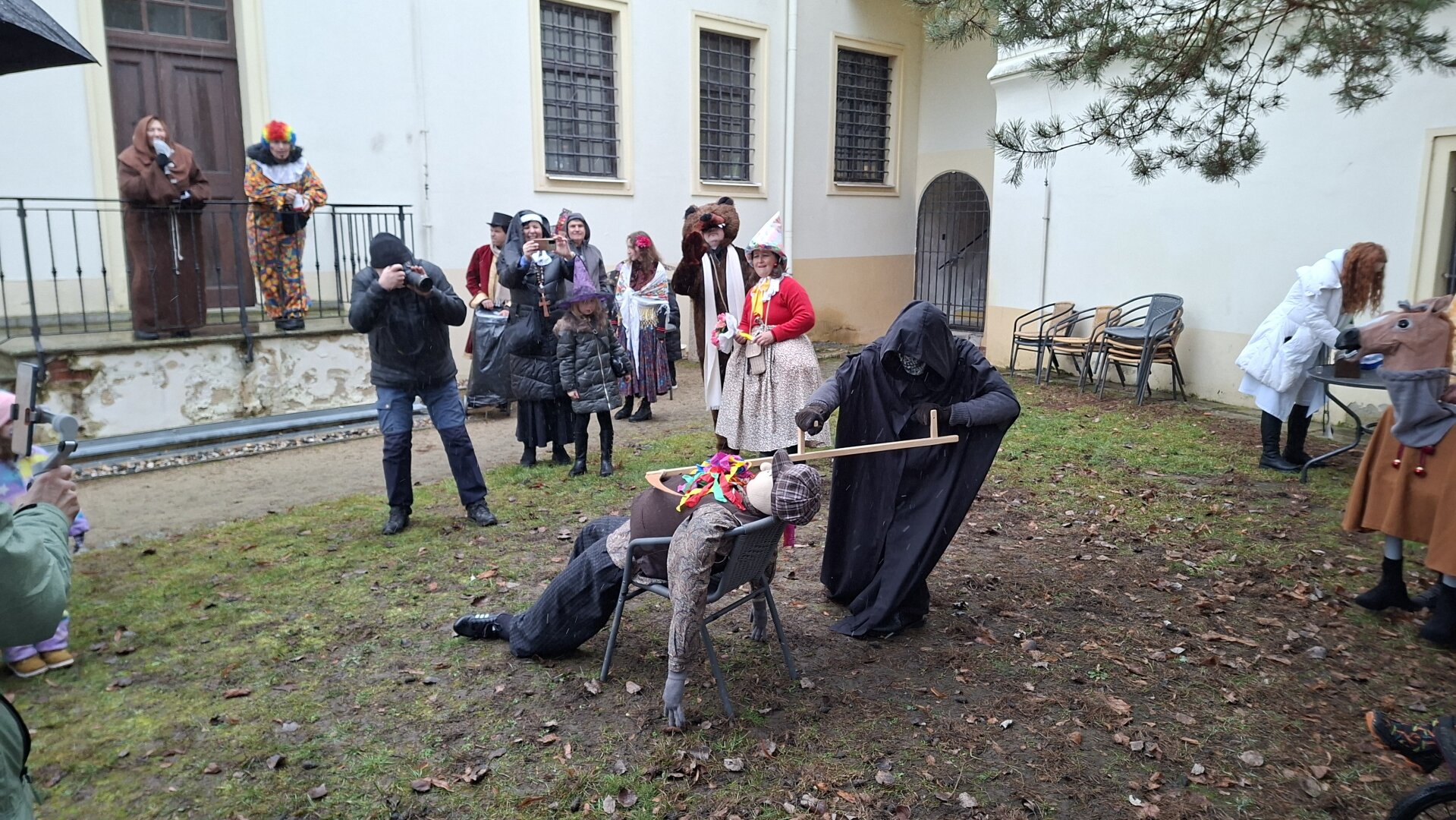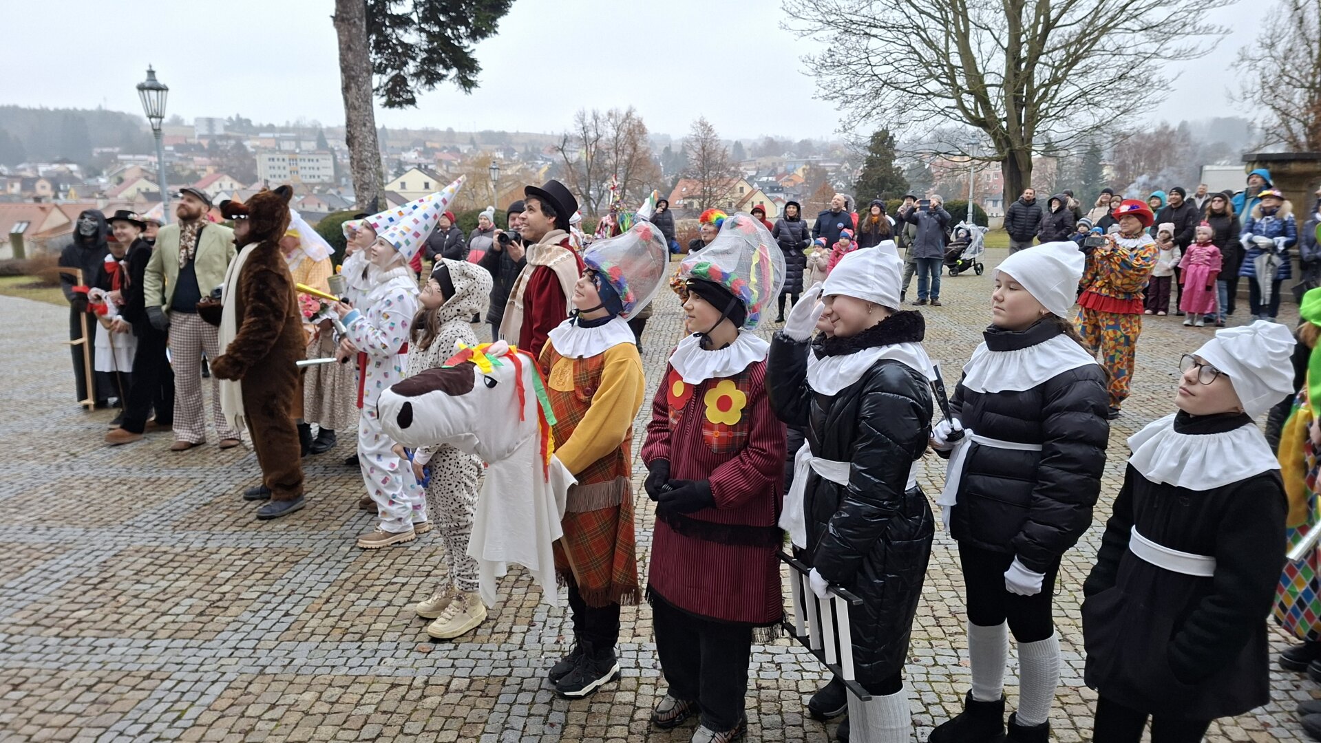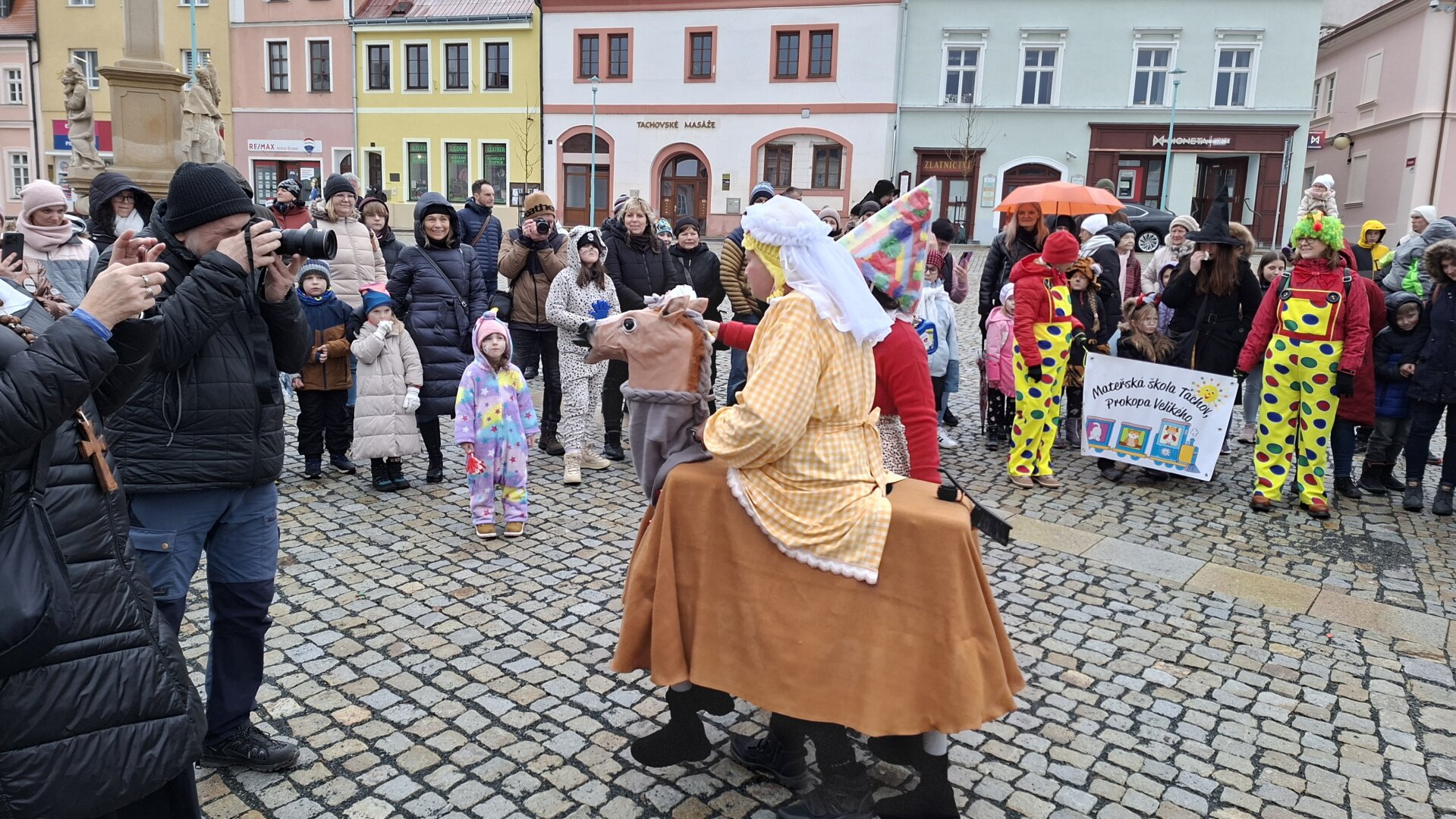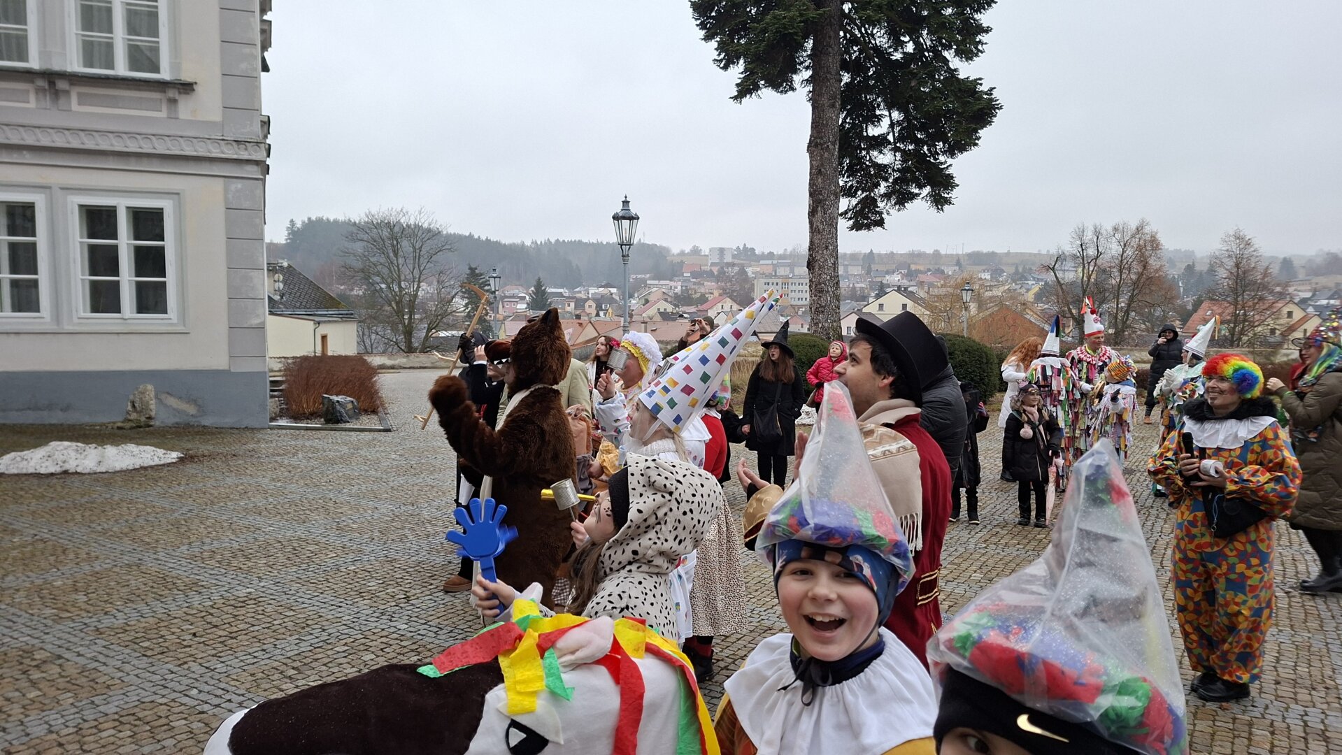 Průvod plný masek doprovázel i zástup veřejnosti a nikomu nevadily ani rozmary počasí, kdy se z počátečního deště vyklubalo sněžení. Nechyběla ani tradiční masopustní scénka, která se po roční pauze opět odehrála na nově zrekonstruovaném tachovském náměstí. Zpívalo se a tančilo také na zámku. Průvod ukončil pohřeb Bakcha na zahradě Muzea Českého lesa v Tachově.