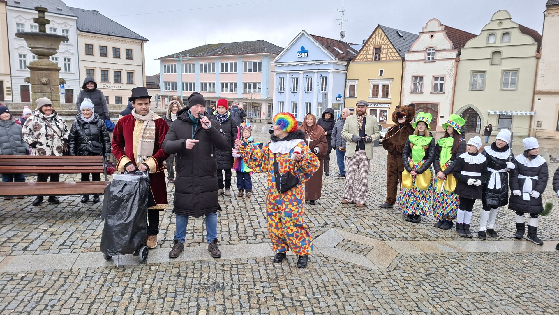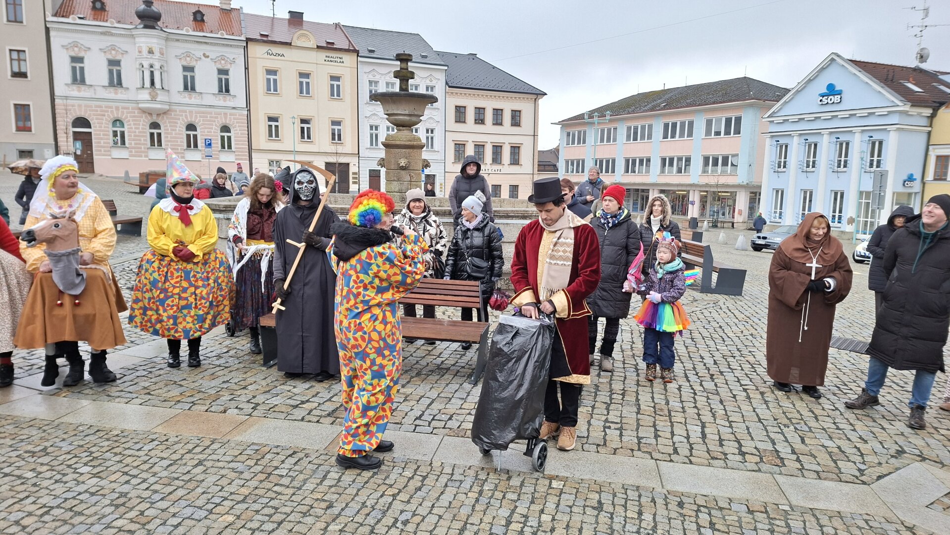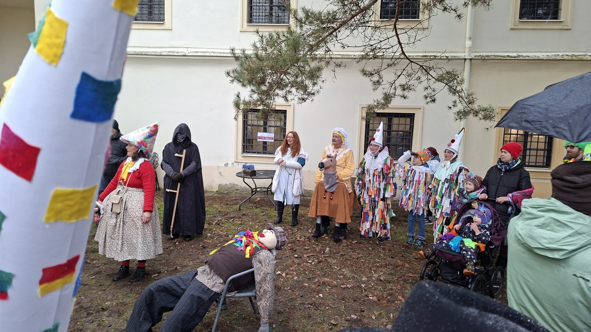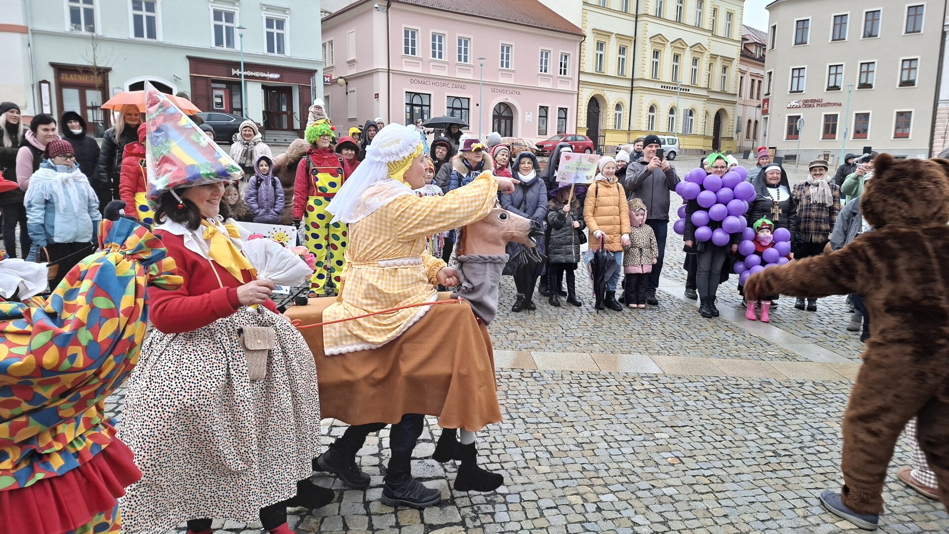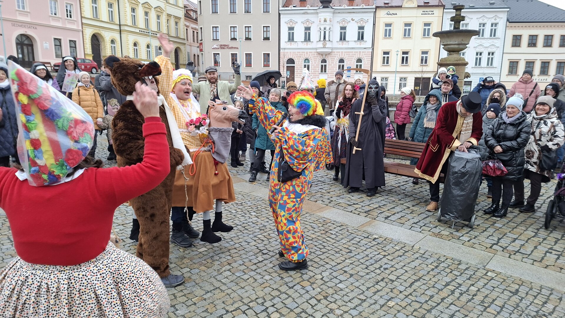 Průvod plný masek doprovázel i zástup veřejnosti a nikomu nevadily ani rozmary počasí, kdy se z počátečního deště vyklubalo sněžení. Nechyběla ani tradiční masopustní scénka, která se po roční pauze opět odehrála na nově zrekonstruovaném tachovském náměstí. Zpívalo se a tančilo také na zámku. Průvod ukončil pohřeb Bakcha na zahradě Muzea Českého lesa v Tachově.