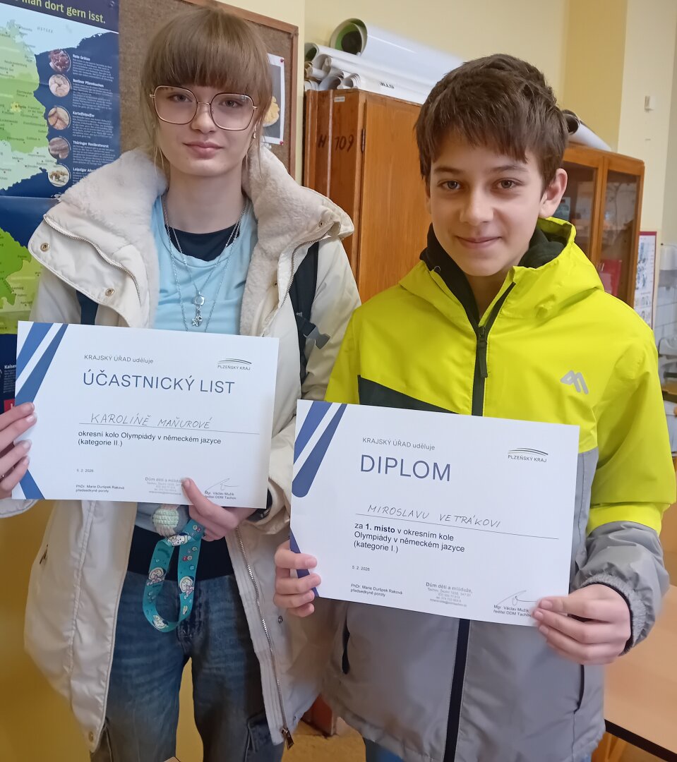 Ve čtvrtek 5. února 2026 hostila ZŠ Bor okresní kolo Olympiády v německém jazyce, kde naší školu skvěle reprezentovali dva nadaní němčináři.
