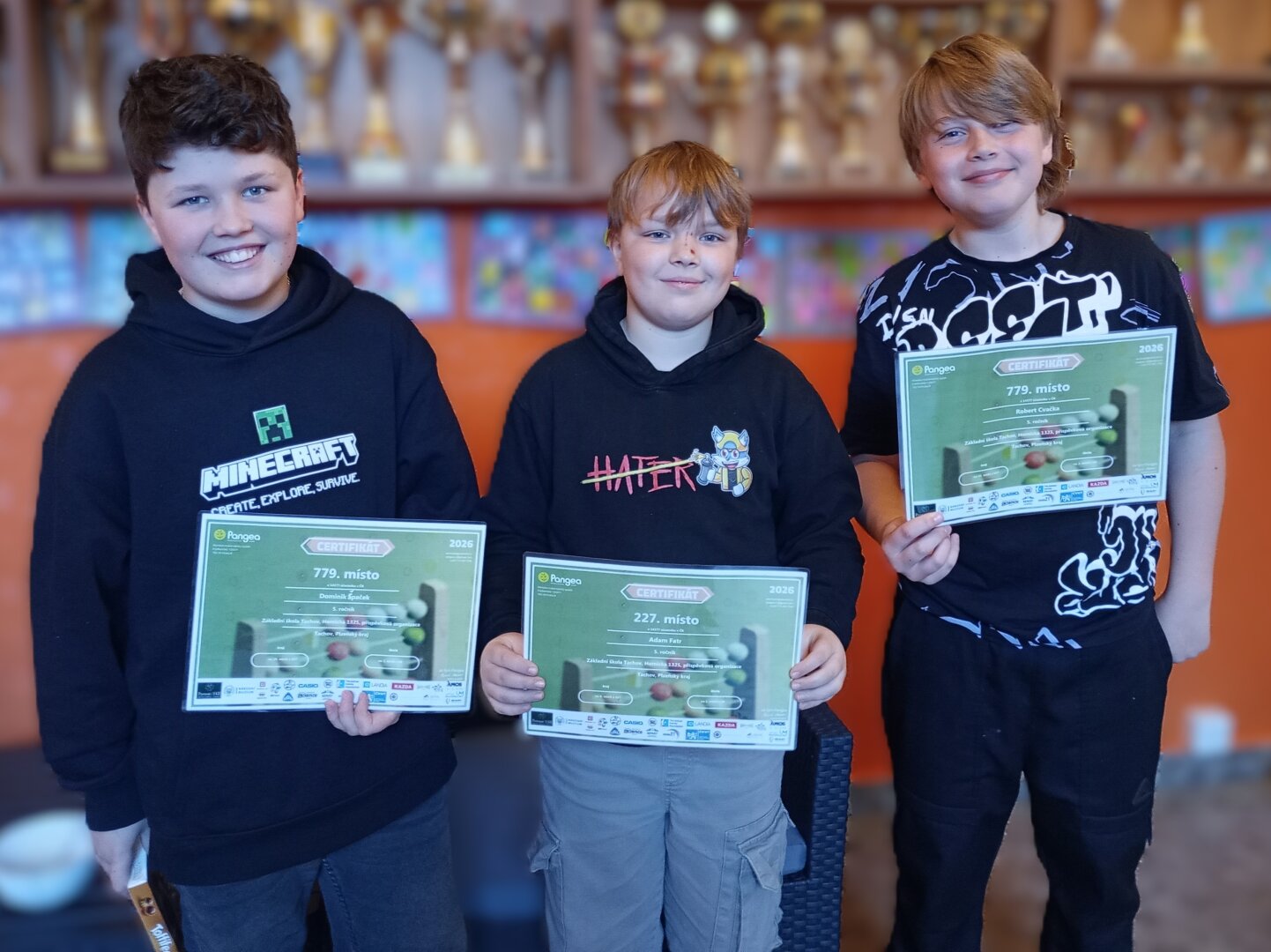 Obrovská gratulace patří našim páťákům – Adamovi, Dominikovi a Robertovi, kteří s přehledem ovládli školní kolo. loupe